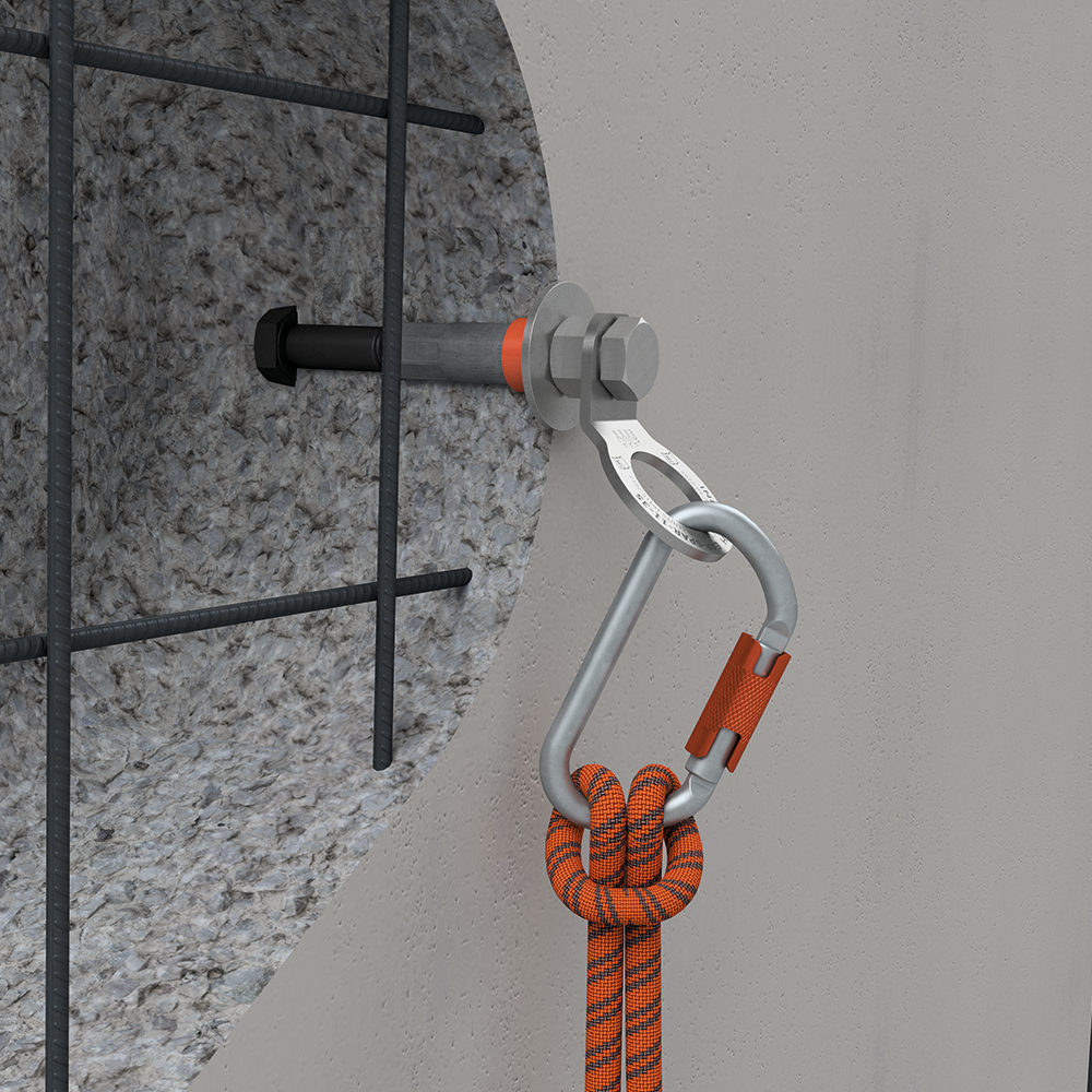 The PHILIPP PB anchor in combination with an Innotech® single anchor point is used as an attachment point for personal protection (with PPE, personal protective equipment against falls from a height) of three persons in total. This “strong” solution combines many advantages from the prefabrication of concrete elements with an easy-to-handle and safe personal protection.