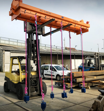 Only one crane (trolley) is available for this turning process – a simple solution was required. TILTING TROLLEY from PHILIPP. The concrete modules can be picked up, lifted and set down with just one trolley. Cost savings due to no need for a turning beam. Lateral feet can be folded in and out.