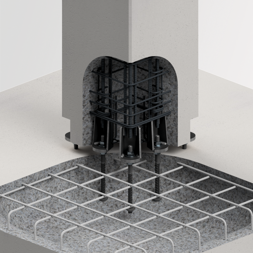 Podpory słupowe w połączeniu z dopasowanymi śrubami kotwiącymi zapewniają stabilne i sztywne połączenie między słupem a fundamentem w prefabrykowanych konstrukcjach betonowych.