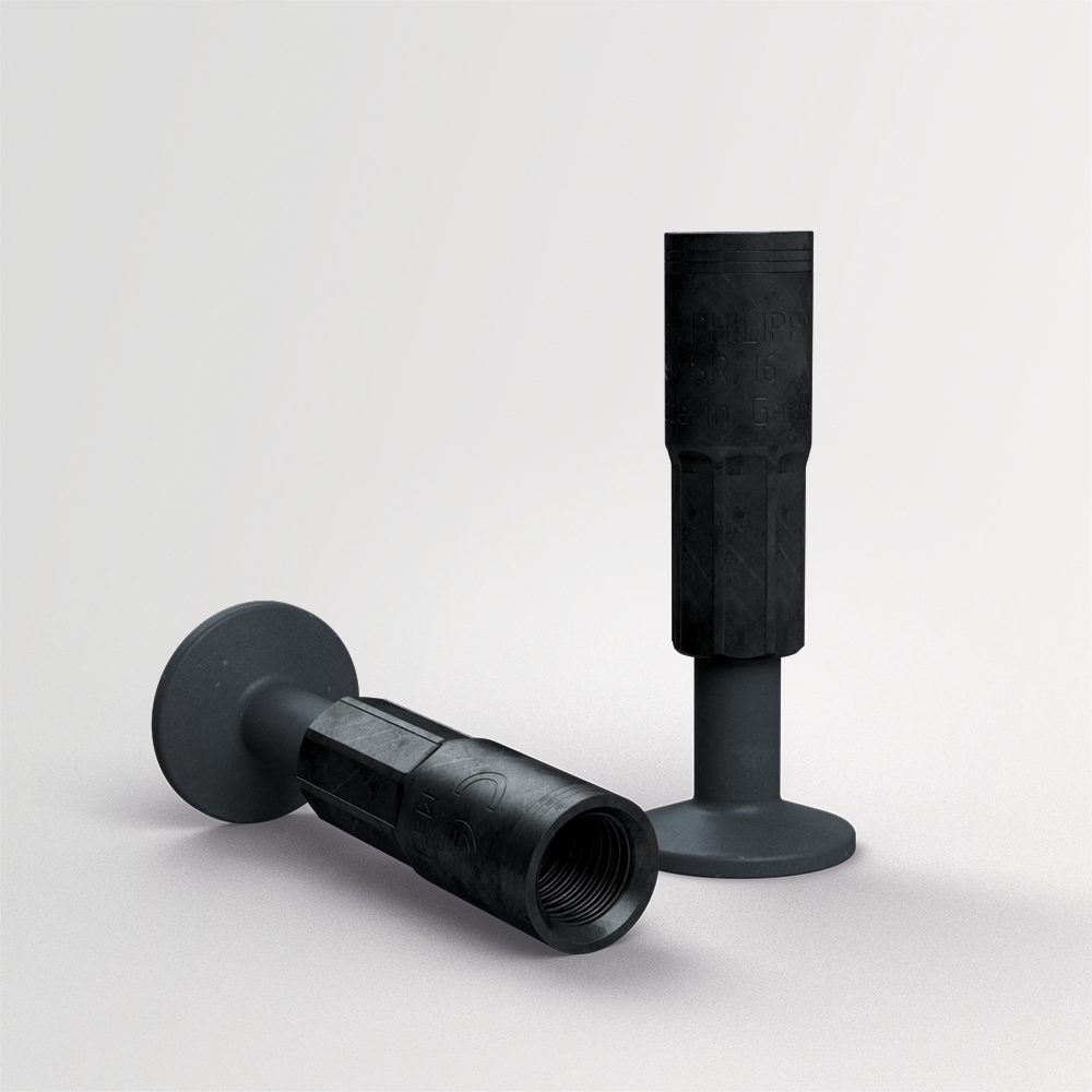 Kompaktanker SR in kurzer Ausführung stellen aufgrund ihrer geringen Verankerungstiefe die ideale Lösung in leichten, dünnen plattenartigen Betonfertigteilen dar. Die Lastrichtungen Axial- und Schrägzug stehen bei diesem Ankertyp uneingeschränkt zur Verfügung.