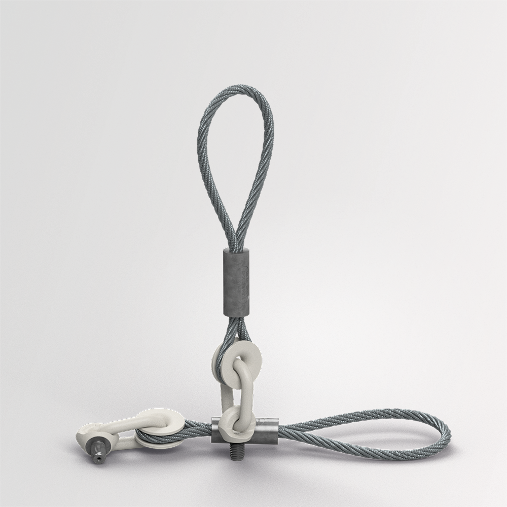 Der Lifty SR DS ist ein universell einsetzbares Lastaufnahmemittel für das Power System SR. Er besteht aus einem geschmiedeten Ringzapfen mit Gewinde und einem eingepressten Volldrahtseil in verzinkter Ausführung.