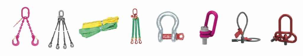 Anschlagketten, Anschlagseile, textile Anschlagmittel, S-Haken, Schäkel, Rundschlingengehänge, Anschlagpunkte