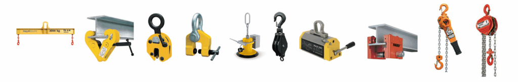 Lasttraversen, Greifer, Klemmen, Fasshandling, Wendetraversen, Krangabeln, Coilhaken, Sonderhaken, Magnetheber Wirbelstar, Lifty, Abheber, Seilschlaufen, Vakuumhebetechnik, Seilkloben